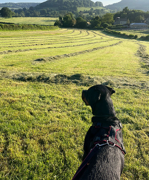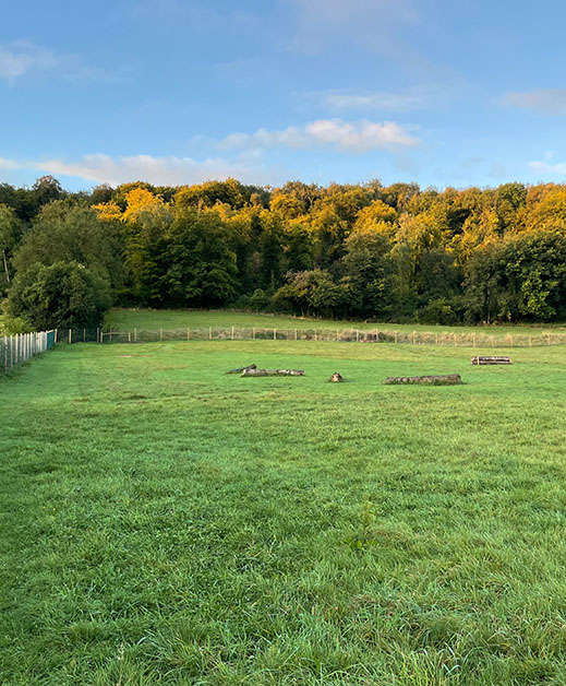 There are horses and cattle in a neighbouring field. There are also dog businesses situated on the farm, and public footpaths running past the bottom of the field. To reduce the chance of seeing other dogs, we recommend booking early mornings, late evenings, or weekends.