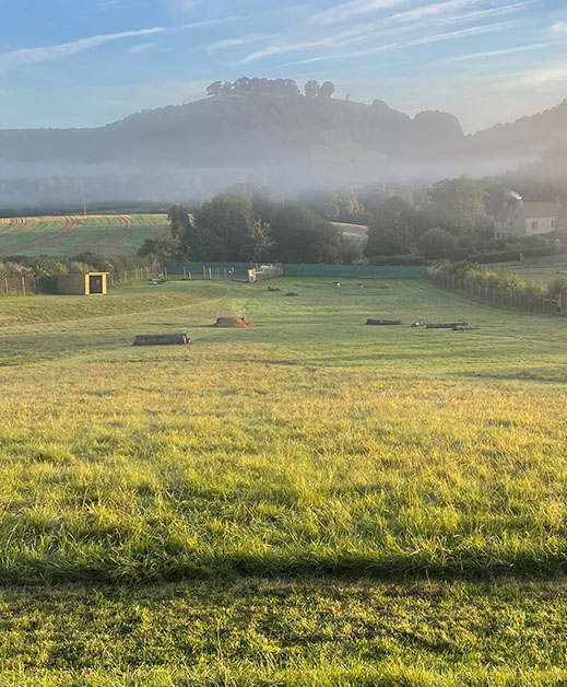 There are horses and cattle in a neighbouring field. There are also dog businesses situated on the farm, and public footpaths running past the bottom of the field. To reduce the chance of seeing other dogs, we recommend booking early mornings, late evenings, or weekends.
